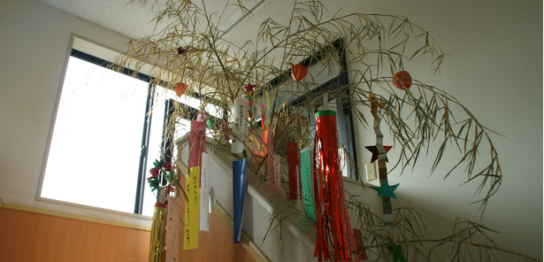 北筑電業では、恒例の七夕祭り飾りつけを行いました。本館2箇所、別館1箇所に飾りつ